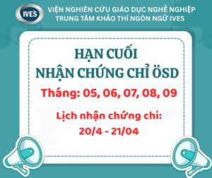 Trung tâm ngoại ngữ và tư vấn du học IVES trực thuộc Viện nghiên cứu giáo dục nghề nghiệp ( IVES). Là đơn vị tiên phong trong lĩnh vực đào tạo ngoại ngữ ( tiếng Đức, tiếng Anh); Tư vấn và tổ chức du học tại các nước Đức, Mỹ, Canada, Úc. Với mong muốn góp phần cải thiện, nâng cao chất lượng nguồn nhân lực và mở ra nhiều cơ hội phát triển cho thế hệ trẻ. IVES xây dựng một lộ trình học tập và phát triển rõ ràng. Giúp học viên chuẩn bị tốt những kỹ năng, kiến thức cần thiết để học tập và phát triển trong môi trường quốc tế.
